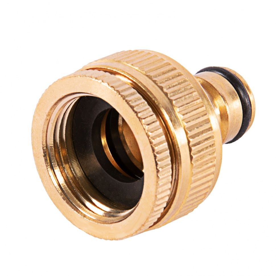 Латунный адаптер Palisad 65840 с внутренней резьбой подключается к резьбовым соединениям диаметром 3/4 или 1 дюйм, для чего комплектуется специальным переходником. Обеспечивает надежное соединение и подходит для кранов, распределителей, распылителей, имеющих выход с внешней резьбой. Используется для организации системы орошения на дачном участке. ПреимуществаШтуцер быстроразъемного соединения позволяет мгновенно присоединять и отсоединять коннектор шланга. Латунный адаптер долговечен и устойчив к повреждениям в результате падений или ударов. Посадочный диаметр и штуцер имеют универсальный размер, что позволяет использовать изделие совместно со всеми элементами оросительных систем Palisad.
