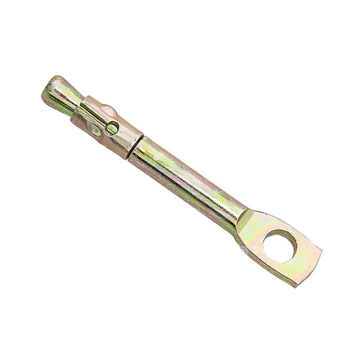 Анкер клин.Описание: анкер клин, название которого говорит само за себя, представляет собой шпильку со шляпкой рассеченную на две части, с утолщением в нижней части одной из них, из-за чего при монтировании создается эффект расклинивания. Очень удобен, прост, а главное очень быстр в установке, на осуществление крепежа потребуется всего пара секунд. Область применения анкера клин: этот анкер применяют в основном для быстрого крепления деталей небольшой толщины к твердым основаниям, например стальные уголки, металлические листы, монтажный профиль. Рекомендуемая толщина прикрепляемых изделий не более 5 мм. Иногда для увеличения площади крепления под анкер клин подкладывается шайба плоская. Способ монтажа анкера клин: монтируется крепежное изделия достаточно просто и быстро, в предварительно просверленное и очищенное отверстие вставляют анкер клин, естественно вместе с изделием которое крепят, и при помощи молотка устанавливают его. Все крепление занимает не более 10 секунд. При креплении подвесных конструкций лучше использовать потолочный анкер, по времени крепления он сравним с анкер клином. Материал использования анкер клина: бетон, полнотелый кирпич, природный камень. Изготовление: материал - сталь, покрытие - желтый цинк.