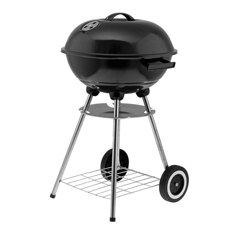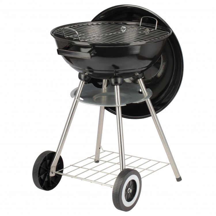 Барбекю Camping Palisad арт. 69610 подходит для приготовления мяса, птицы, рыбы и овощей на свежем воздухе. Он может применяться на приусадебных участках, в походах и на пикниках, на охоте и рыбалке. Эргономичная форма в виде сферы способствует равномерному распределению тепла и идеальной прожарке стейков, шашлыка и других деликатесов. ,Регуляторы температуры и тяги обеспечивают циркуляцию воздуха внутри жаровни — отверстия в поддоне открываются и закрываются с помощью удобной рукоятки, и температура углей меняется в зависимости от пожеланий пользователя. Использовать оборудование можно также в качестве коптильни, мангала и гриля. ПреимуществаБлагодаря сферической форме барбекю максимально сберегает тепло, а значит, уменьшает расход топлива. Корпус из углеродистой стали толщиной 0,8 мм покрыт жаропрочной эмалью, выдерживает нагрев до 300 ℃ и рассчитан долгую службу. Емкость для сбора золы позволяет поддерживать пространство вокруг барбекю в чистоте. Круглая решетка с хромированным покрытием невосприимчива к перепадам температур, легко очищается после эксплуатации и имеет 2 ручки для легкой установки и снятия с поддона. У барбекю предусмотрена нижняя полка-решетка для посуды и аксессуаров, необходимых в процессе приготовления еды. Диаметр барбекю составляет 44 см — на нем поместится несколько порций для всей семьи. Транспортировочные колеса позволяют легко перемещать барбекю в нужное место и придвигать его прямо к столу.