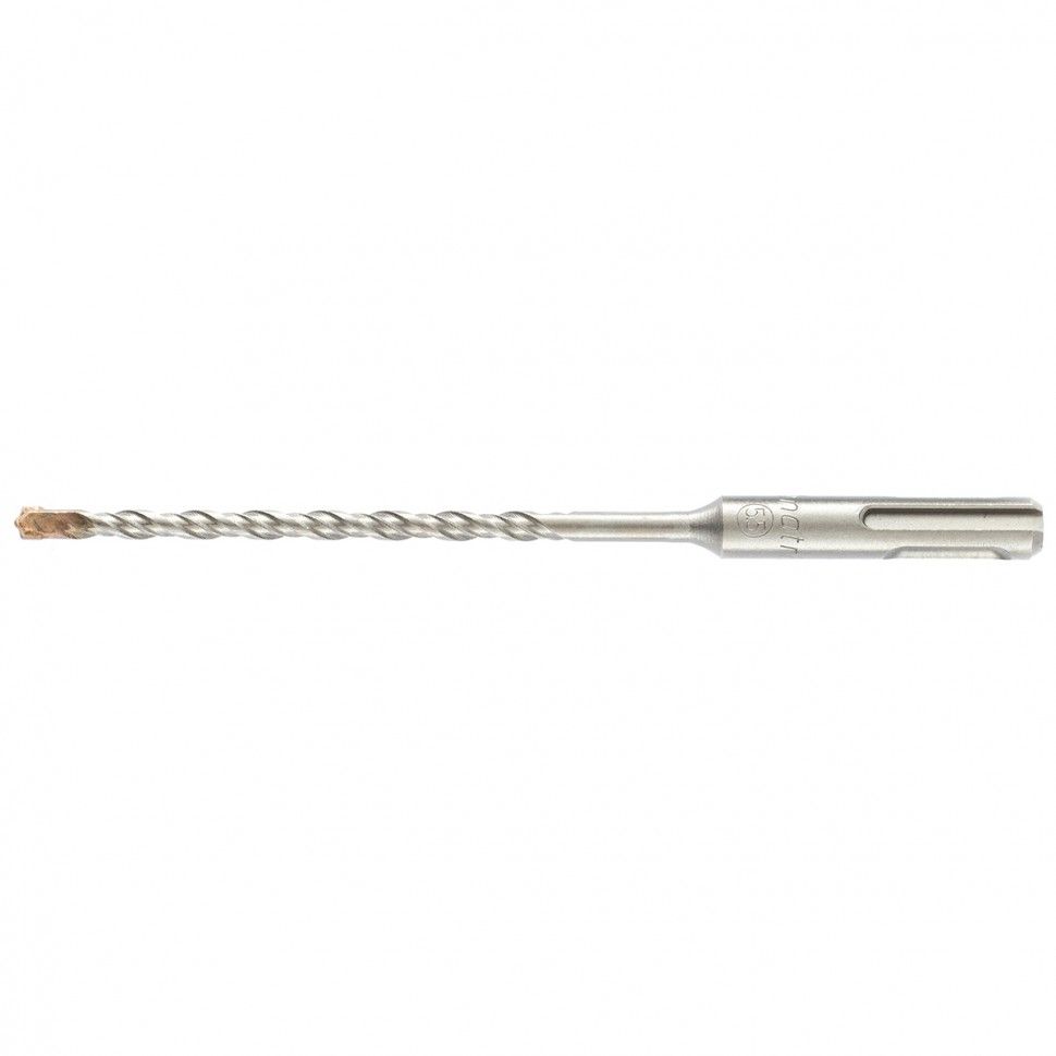 Бур по бетону Matrix 71006, 5,5 х 160 мм, SDS PLUS предназначен для установки на перфоратор и позволяет получать отверстия диаметром 5,5 мм в бетоне, камне и кирпиче. Он эффективно решает поставленные задачи благодаря режущей пластине из высокотвердого сплава карбида вольфрама ВК8 твердостью 80-90 HRC. ПреимуществаХвостовик SDS Plus позволяет быстро устанавливать бур и надежно его фиксирует. Рабочая часть изготовлена из легированной стали 40Х с добавлением хрома, поэтому инструмент устойчив к высоким нагрузкам, возникающим при ударном сверлении. На режущей пластине имеется центрирующая головка — во время работы бур не уводит в сторону, что повышает качество сверления и продлевает ресурс работы инструмента. Увеличенная площадь сечения корпуса способствует снижению вибраций при сверлении и предотвращает поломку бура. Двойная усиленная спираль удаляет большое количество шлама, в результате снижается нагрузка на бур и возрастает его производительность.