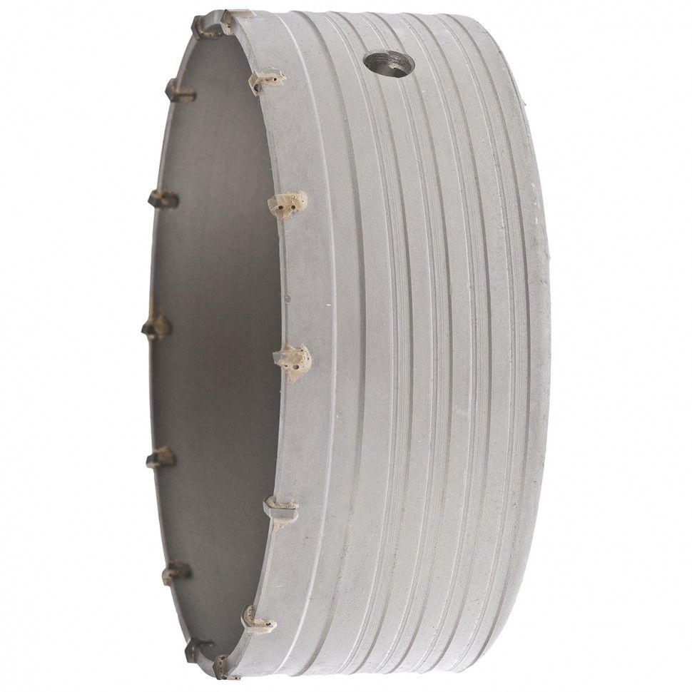 Буровая коронка Matrix 70396 с посадкой M22, диаметром 150 мм, рассчитана на сверление отверстий в бетоне, кирпиче, граните, природном и искусственном камне. Устанавливается на ударные дрели или перфораторы с патронами под хвостовик SDS-Plus или SDS-Max. Коронка позволяет получить большие отверстия, поэтому пригодится для монтажа розеток, выключателей и прокладки труб. ПреимуществаПрочность и высокий ресурс — корпус выполнен из углеродистой стали, а зубья — из твердого сплава ВК8. Эффективность — спиральная канавка на корпусе обеспечивает улучшенный отвод продуктов сверления, что снижает нагрузку на перфоратор и повышает скорость работы. Функциональность — к коронке можно подобрать центрирующее сверло с необходимым типом хвостовика Matrix 70338-70363 (приобретается отдельно).