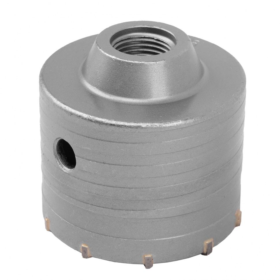 Буровая коронка M22 х 76 мм Matrix 70381 рассчитана на сверление отверстий в бетоне, кирпиче, граните, природном и искусственном камне. Устанавливается на ударные дрели или перфораторы с патронами под хвостовик SDS-Plus или SDS-Max. Коронка позволяет получить большие отверстия, поэтому пригодится для монтажа розеток, выключателей и прокладки труб. ПреимуществаПрочность и высокий ресурс — корпус выполнен из углеродистой стали, а зубья — из твердого сплава ВК8. Эффективность — спиральная канавка на корпусе обеспечивает улучшенный отвод продуктов сверления, что снижает нагрузку на перфоратор и повышает скорость работы. Функциональность — к коронке можно подобрать центрирующее сверло с необходимым типом хвостовика Matrix 70338-70363 (приобретается отдельно).