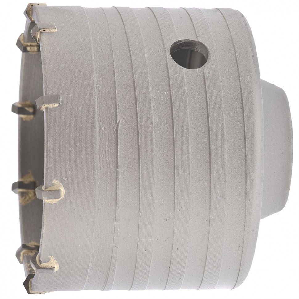 Буровая коронка M22 х 80 мм Matrix 70383 рассчитана на сверление отверстий в бетоне, кирпиче, граните, природном и искусственном камне. Устанавливается на ударные дрели или перфораторы с патронами под хвостовик SDS-Plus или SDS-Max. Коронка позволяет получить большие отверстия, поэтому пригодится для монтажа розеток, выключателей и прокладки труб. ПреимуществаПрочность и высокий ресурс — корпус выполнен из углеродистой стали, а зубья — из твердого сплава ВК8. Эффективность — спиральная канавка на корпусе обеспечивает улучшенный отвод продуктов сверления, что снижает нагрузку на перфоратор и повышает скорость работы. Функциональность — к коронке можно подобрать центрирующее сверло с необходимым типом хвостовика Matrix 70338-70363 (приобретается отдельно).