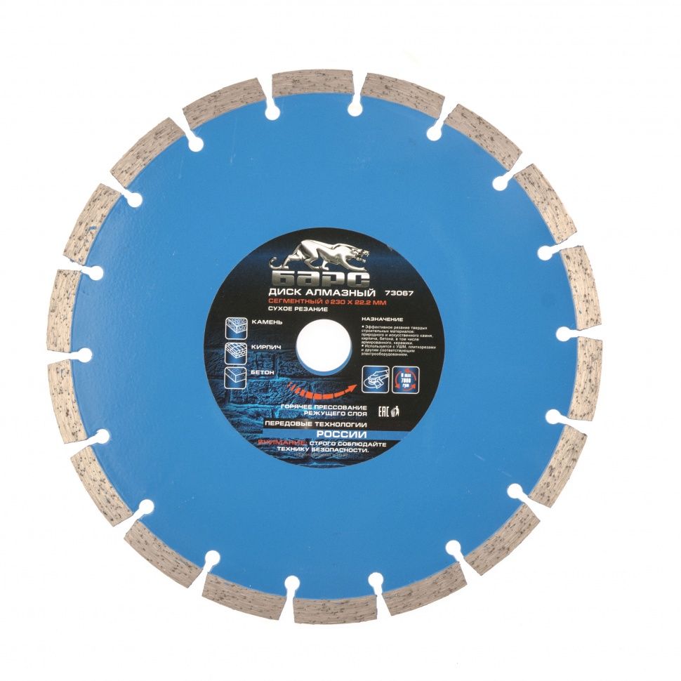 Диск алмазный, сегментный 230 х 22.2 мм, сухая резка Барс