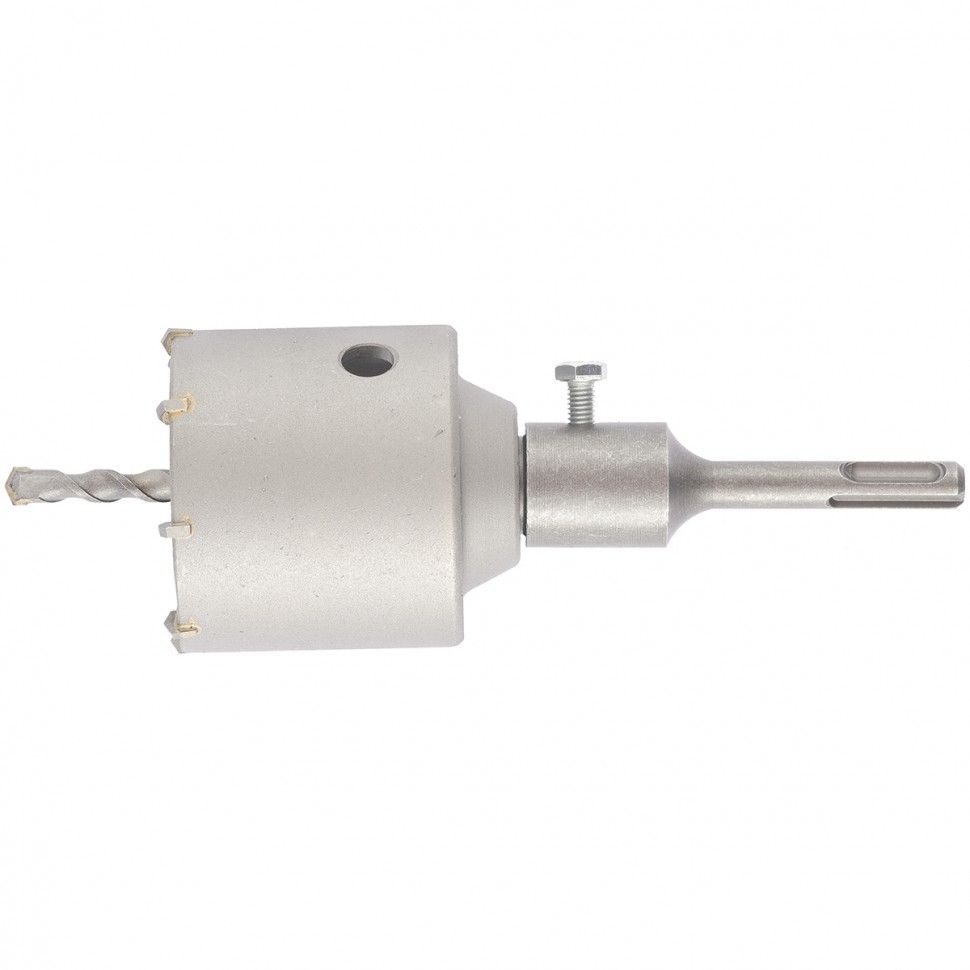 Коронка по бетону М22 х 68 мм Сибртех 703307 в сборе с хвостовиком устанавливается на ударную дрель или перфоратор с патроном SDS PLUS. Позволяет получить отверстия в бетоне, кирпиче, граните, камне. Коронка пригодится при установке розеток и выключателей. ПреимуществаПрочность и износостойкость — наконечник сверла и зубья выполнены из твердого сплава ВК8, а корпус изготовлен из прочной углеродистой стали. Эффективная работа — режущие пластины твердостью 86-89 HRC обеспечивают высокую производительность. Коррозионная стойкость — на коронку нанесено защитное консервирующее покрытие на масляной основе. Ровные отверстия — гладкий корпус коронки уменьшает трение, а центрирующее сверло предотвращает смещение коронки.