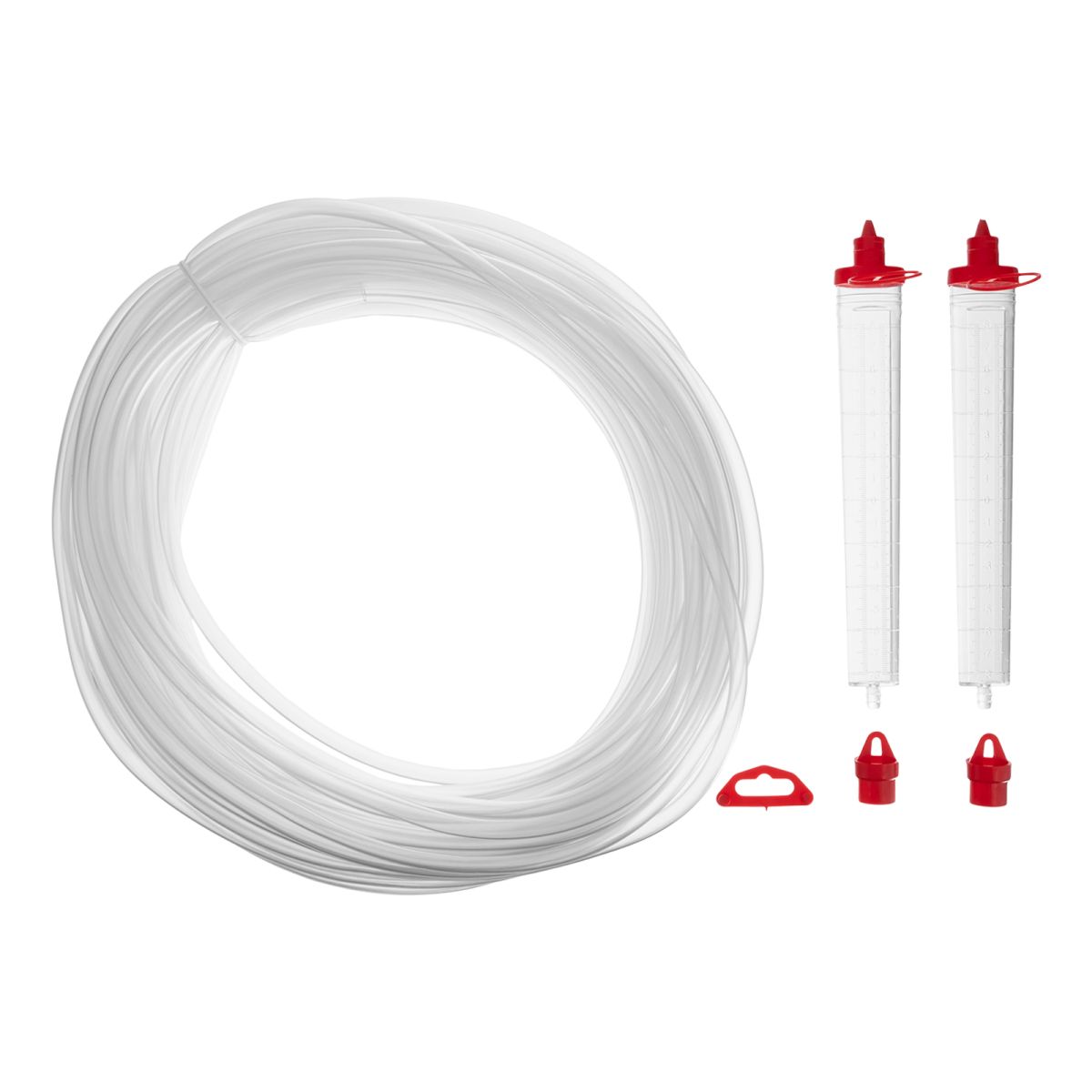 Гидроуровень Matrix 37091 с удлиненными колбами и рельефной градуировкой предназначен для выравнивания объектов на расстоянии до 7 м. Используется при проведении ремонтно-строительных работ: изготовлении опалубки, установке фундамента, кладке плитки. Особо светлые колбы с рельефной градуировкой облегчают считывание результатов измерения. ПреимуществаВозможность интенсивной эксплуатации — колбы изготовлены из ударопрочного полистирола, гибкий шланг устойчив к излому. Долгий срок службы — рельефная шкала не стирается со временем. Повышенная прозрачность колб — это позволяет вовремя замечать и устранять пузырьки воздуха, не допуская снижения точности измерений. Удобная транспортировка — на заводском пакете имеется подвесная ручка и клапан. Простое обслуживание и хранение — в комплект входит специальный подвес с держателем.