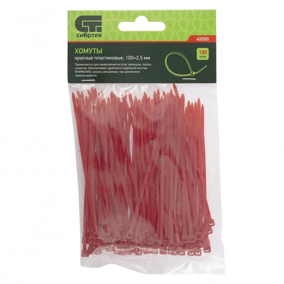 Хомуты, 100 x 2.5 мм, пластиковые, красные, 100 шт Сибртех