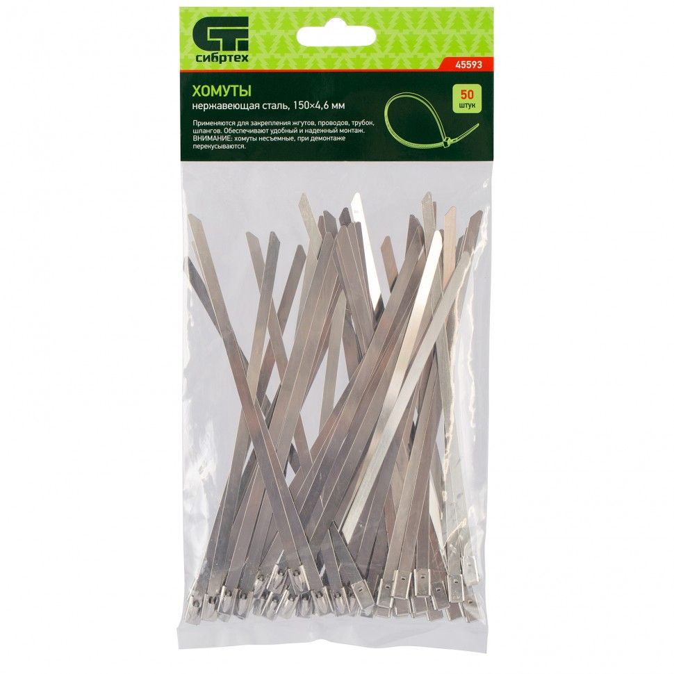 Хомуты, 150 х 4.6 мм, нержавеющая сталь, 50 шт Сибртех