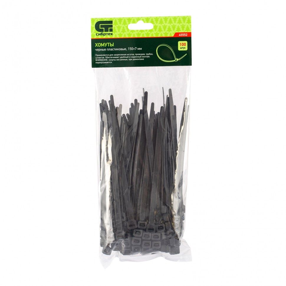 Хомуты, 150 х 7 мм, пластиковые, черные, 100 шт Сибртех