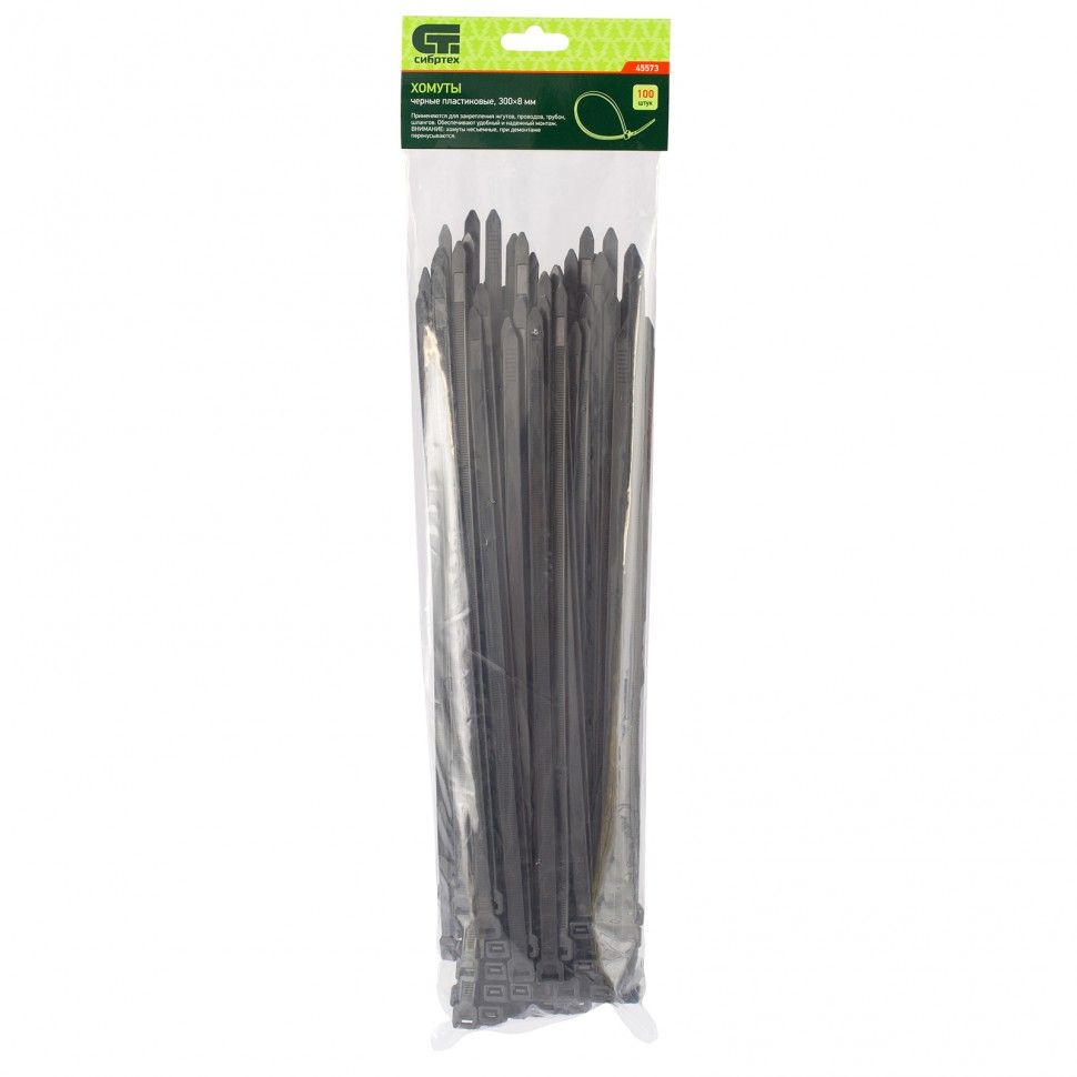 Хомуты, 300 х 8 мм, пластиковые, черные, 100 шт Сибртех