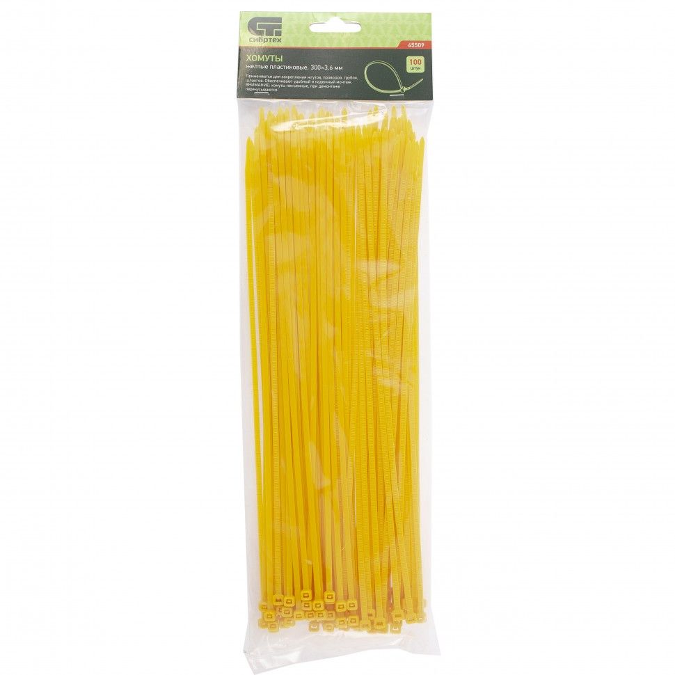 Хомуты, 300 x 3.6 мм, пластиковые, желтые, 100 шт Сибртех