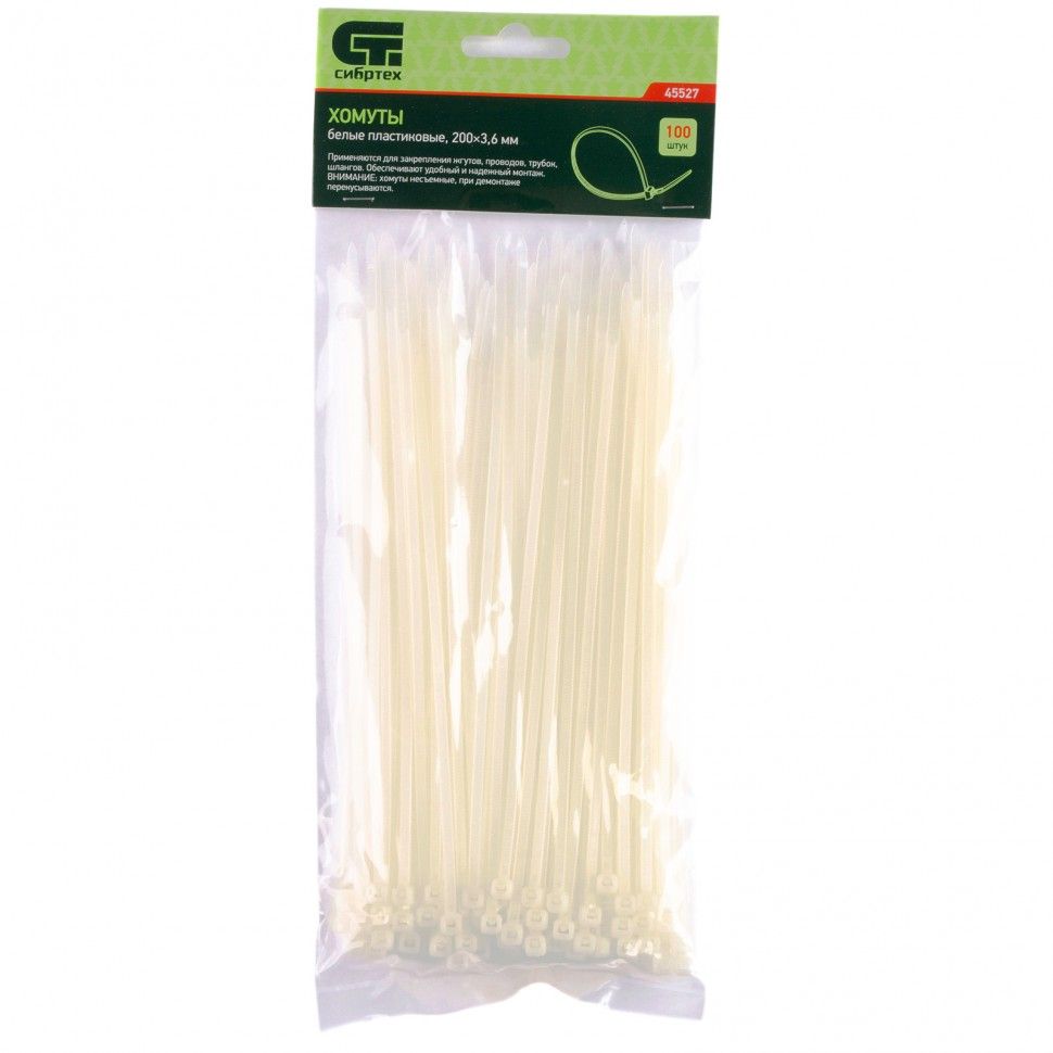 Хомуты пластиковые 200х3,6мм, белые, 100 шт.// Сибртех