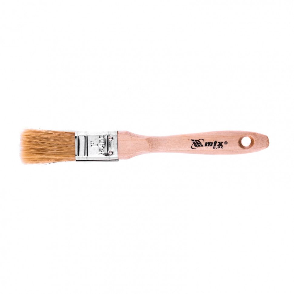 Плоская кисть MTX «Евро» 83051 шириной 1 дюйм, с натуральной щетиной и деревянной ручкой, используется для профессионального окрашивания поверхностей. Рекомендуется для нанесения агрессивных ЛКМ с содержанием растворителей. ПреимуществаШирина рабочей части 25 мм — кистью удобно окрашивать труднодоступные участки. Прочность и долговечность — бандаж надежно скрепляет щетину с рукояткой, поэтому кисть выдерживает многократное использование. Высокое качество окрашивания — дважды вываренная щетина не содержит посторонних примесей, а расщепленные кончики увеличивают ее способность впитывать и отдавать краску. Коррозионная стойкость — защитное покрытие предотвращает разрушение бандажа под воздействием влаги. Эргономичность — отшлифованная и покрытая лаком рукоятка удобно лежит в руке, а специальное отверстие позволяет подвешивать кисть на гвоздь или крючок.