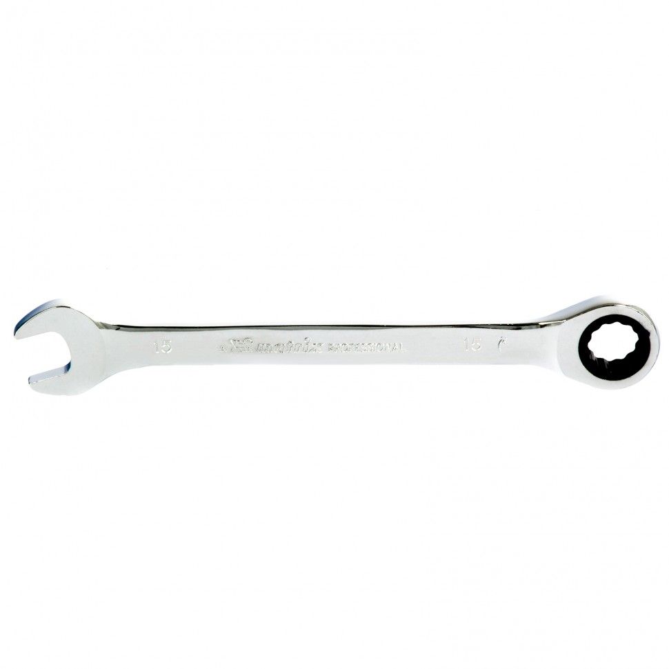 Ключ комбинированный трещоточный, 15 мм, CrV, зеркальный хром Matrix Professional