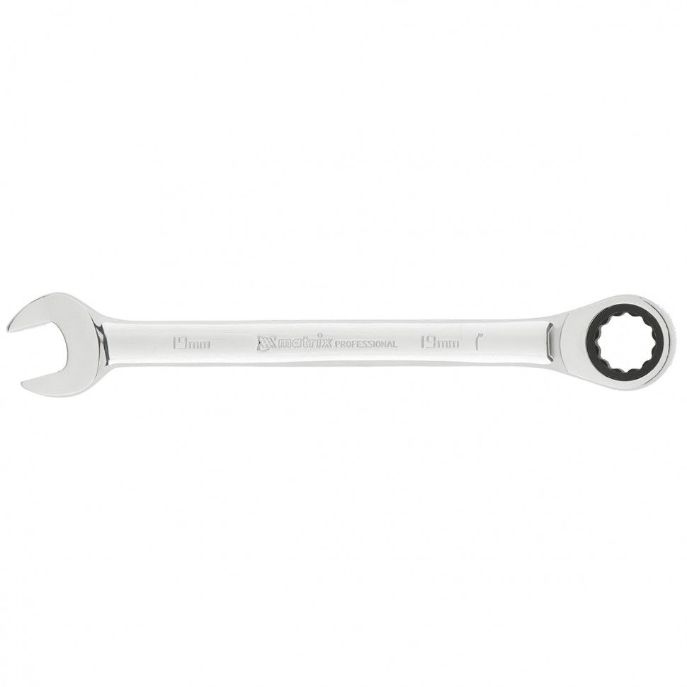 Ключ комбинированный трещоточный, 19 мм, CrV, зеркальный хром Matrix Professional