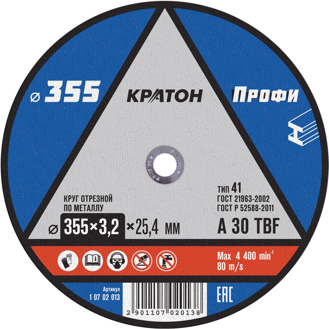Круг отрезной по металлу Кратон «Профи» A30TBF 355х3,2х25,4 мм