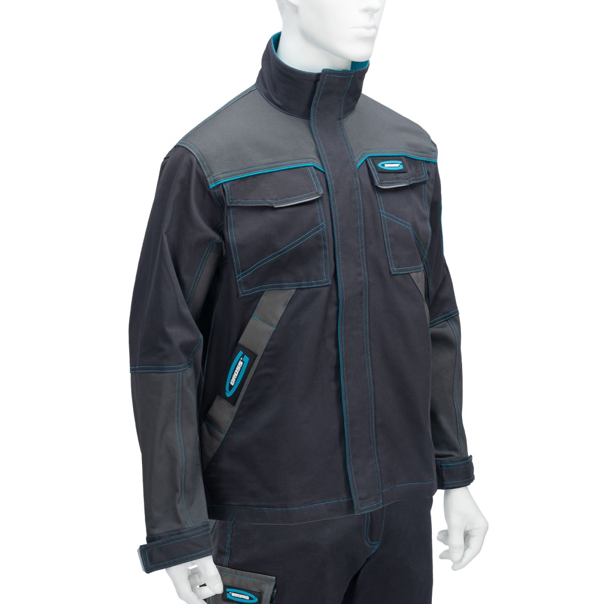 Профессиональная рабочая куртка Gross 90432 размера M защищает пользователя от общих производственных загрязнений, нетоксичной пыли, ветра и незначительных механических воздействий. Рассчитана на рост 172-178 см и предназначена для использования в теплое время года или в отапливаемом помещении. Куртка изготовлена из ткани с 97-процентным содержанием хлопка и 3-процентным содержанием спандекса. За счет наличия хлопковых волокон в составе ткань прекрасно пропускает воздух и приятна на теле, а спандекс делает ее более эластичной, поэтому в куртке удобно работать. Одежда выполнена в практичном темно-сером цвете. ПреимуществаВлаго- и износостойкость — материал куртки устойчив к истиранию, на карманах имеются дополнительные нашивки из непромокаемой ткани. Функциональность — спецодежда оснащена воротником-стойкой, светоотражающими элементами, дополнительным клапаном на центральной молнии для защиты от ветра и 5 удобными карманами для мелочей. Безопасность — благодаря светоотражающим элементам куртка хорошо заметна в условиях плохой видимости. Комфортное ношение — манжеты и нижняя часть куртки регулируются клапанами на липучке.