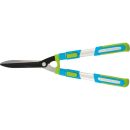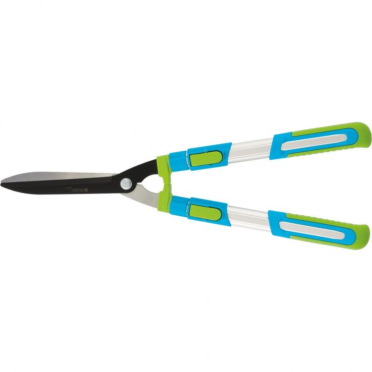 Кусторез Palisad LUXE 60592 с телескопическими алюминиевыми рукоятками, регулируемыми по длине от 640 до 820 мм, используется садоводами для стрижки кустов и живых изгородей на дачном участке. Успешно справляется с обрезкой молодых веток толщиной до 10 мм. Телескопические рукоятки облегчают работу на высоте и в труднодоступных местах. ПреимуществаПрочность и износостойкость — лезвия изготовлены из среднеуглеродистой стали, а термообработанные и заточенные режущие кромки долго не теряют остроту. Эффективность и высокий ресурс — тефлоновое покрытие облегчает рез, а также защищает основное лезвие от воздействия влаги. Безопасность — специальный ограничитель предотвращает выход кустореза из строя при сильном сжатии рукояток. Надежная конструкция — алюминиевые рукоятки с овальным профилем обладают высокой устойчивостью к изгибу и не утяжеляют инструмент. Надежный хват — на рукоятках имеются мягкие резиновые накладки.