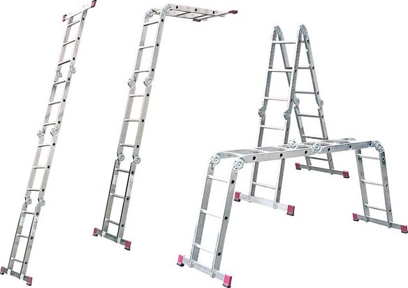 Шарнирная алюминиевая лестница Сибртех 97883 представляет собой 4 секции по 5 ступеней, которые можно настроить в нескольких рабочих положениях. Она может использоваться в качестве приставной лестницы, двухсторонней стремянки и помоста. Будет полезна как в быту, так и на небольших стройках, в гараже и магазинах. ПреимуществаШирокие траверсы — лестница устойчиво фиксируется на горизонтальной поверхности в любом рабочем положении. Противоскользящее рифление на ступенях — пользоваться лестницей безопасно, нога не соскользнет в процессе выполнения работ. Сочетание легкости и прочности — рама изготовлена из прессованного алюминиевого профиля прямоугольного сечения, выдерживает нагрузку до 120 кг. Надежные шарнирные механизмы — лестница не шатается в рабочих положениях, смена рабочих положений происходит быстро и легко.