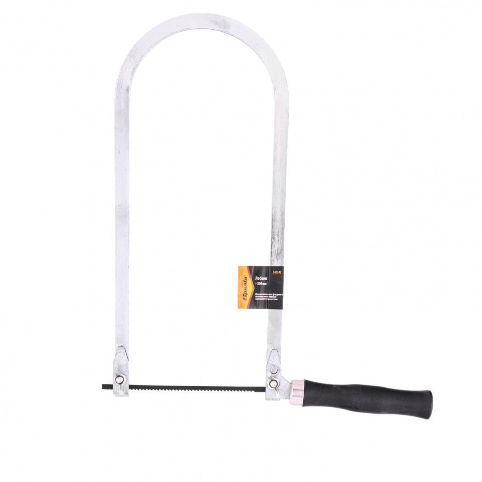 Лобзик Sparta 240245 длиной 300 мм предназначен для выполнения прямо- и криволинейных распилов в фанерных или пластиковых заготовках. Прочная и упругая стальная рама надежно удерживает полотно длиной 120 мм, обеспечивая высокое качество работ. Лобзик используется для ремонта и отделки, а также для художественной резьбы по дереву. ПреимуществаВысокий ресурс — полотно изготовлено из высокоуглеродистой стали, а зубья прошли дополнительную закалку и долго сохраняют режущие свойства. Удобная работа с небольшими деталями — мелкие зубья обеспечивают необходимую точность распила. Комфортное использование — благодаря удобной и легкой пластиковой рукоятке длительная работа не вызывает усталость.