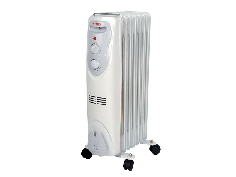 Масляный радиатор Ресанта ОМ-7Н - прибор бытового назначения, который служит для обогрева помещений. Радиатор имеет три режима нагрева, которые переключаются при помощи удобной ручки. Прибор состоит из семи секций, имеет мощность 1.5 кВт и работает от электросети с напряжением 220 В. Четыре пластмассовых колеса крепятся на основании прибора - что позволяет с легкостью перемещать прибор в пределах помещения.