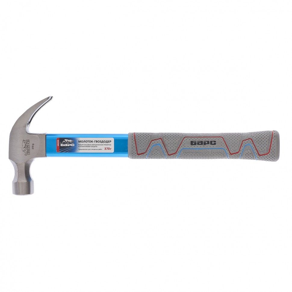 Молоток-гвоздодер 370 г, фибергласовая обрезиненная рукоятка, алюминиевая защита Барс