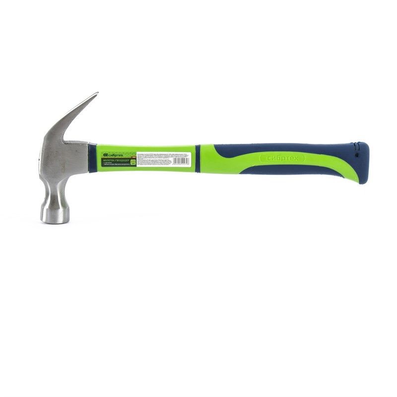 Молоток-гвоздодер, 450 г, с магнитом, фибергласовая обрезиненная рукоятка Сибртех