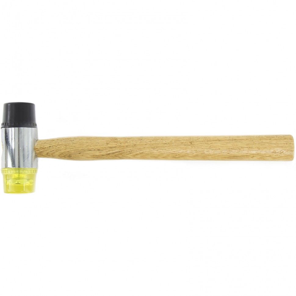 Рихтовочный молоток Sparta 108305 с бойками диаметром 35 мм, комбинированной головкой и деревянной ручкой, предназначен для выпрямления деформированного листового металла или более мягких материалов. Не повреждает поверхность при ударах. Будет полезен в слесарной мастерской, в гараже, а также дома или на даче. ПреимуществаЭффективная обработка различных материалов — бойки изготовлены из пластика разной твердости. Надежность — бойки закреплены на головке при помощи резьбового соединения. Прочная конструкция — деревянная рукоятка расклинена в головке и дополнительно зафиксирована эпоксидным клеем.