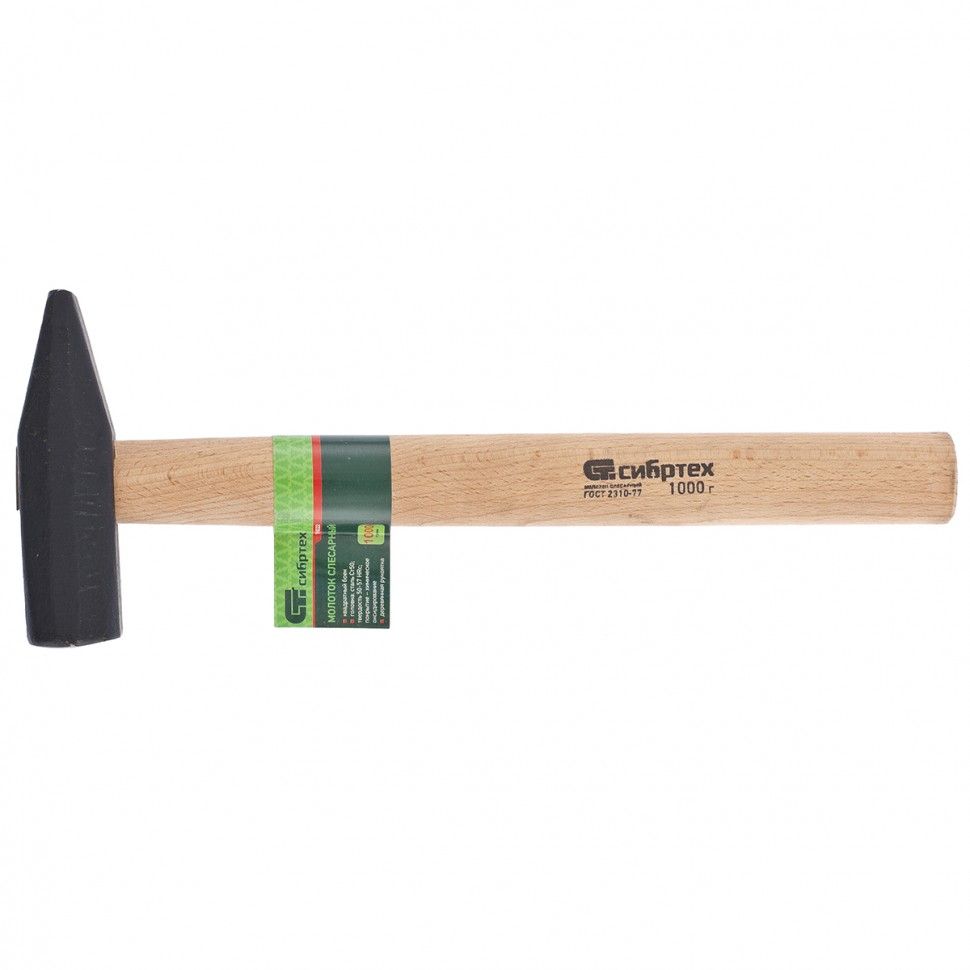 Молоток слесарный 1000 г, квадратный боек, деревянная рукоятка Сибртех