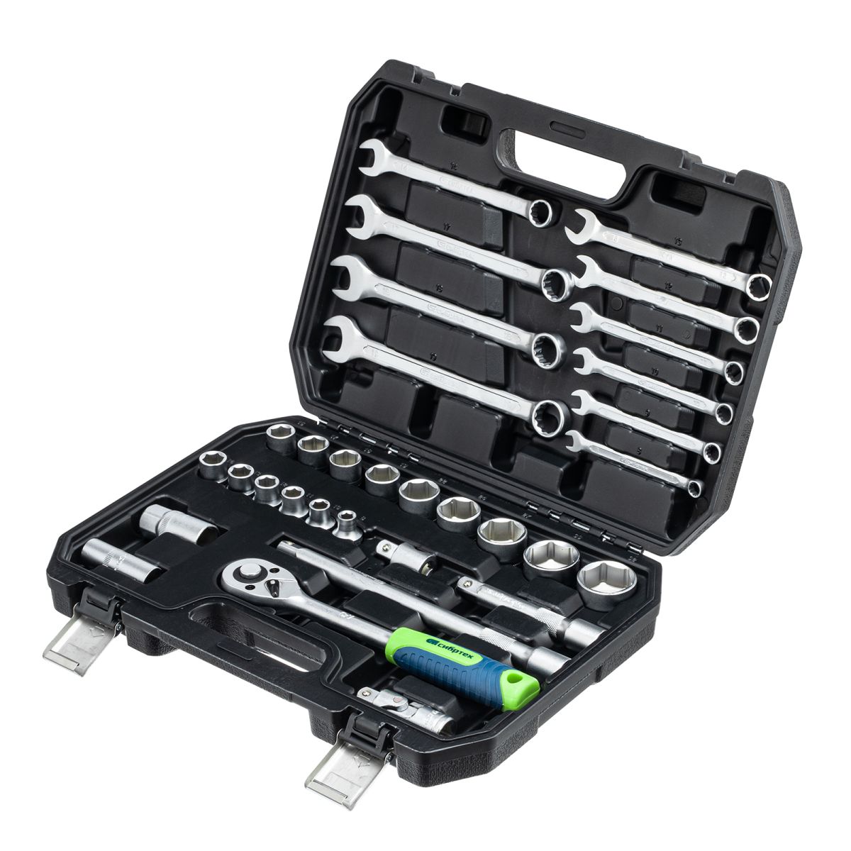 Набор инструментов, 1/2", пластиковый кейс, 32 предмета// Сибртех