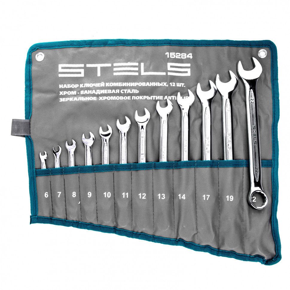 Набор Stels 15284 включает 12 комбинированных ключей из стали CrV, размером от 6 до 22 мм, антислип, которые позволяют откручивать и закручивать резьбовые соединения. Они универсальны в применении, т. к. имеют кольцевую и рожковую головки. 12-гранный профиль накидного зева обеспечивает увеличенную площадь контакта с поверхностью крепежа, что минимизирует вероятность его деформации. Ключи будут полезны в автомастерской, для монтажа и демонтажа оборудования, пригодятся для работ по дому. ПреимуществаВысокий показатель прочности — инструменты изготовлены из стали хромованадиевой группы, твердость рабочих частей составляет 42-50 HRC. Улучшенные антикоррозионные свойства и повышенная износостойкость благодаря хромированному покрытию. Удобство при выполнении монтажных работ — кольцевой зев каждого ключа смещен на 15 градусов относительно его тела. Надежный хват — благодаря рельефной поверхности ключи не скользят в руке.