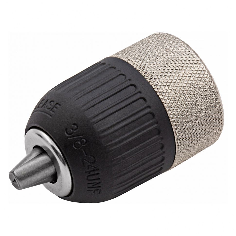 Быстрозажимной патрон для дрели Matrix 16812 с посадочным размером 3/8 дюйма подходит для фиксации сверл диаметром 2-13 мм. Оптимален для бытовых и полупрофессиональных работ, когда требуется частая смена оснастки. ПреимуществаТвердость кулачков патрона 54-56 HRC — возможна работа с повышенной нагрузкой, использование аккумуляторных шуруповертов. Быстрозажимной механизм — для замены оснастки не требуется дополнительный инструмент. Рифленая поверхность — патрон не скользит в руке, делает работу более удобной. Понятная маркировка — можно быстро определить характеристики патрона.
