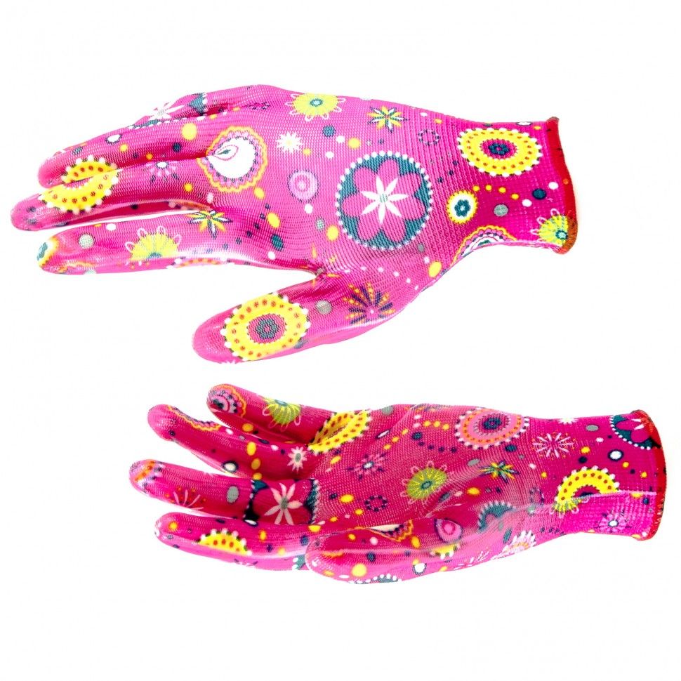 Перчатки садовые из полиэстера с нитрильным обливом, красные, M Palisad