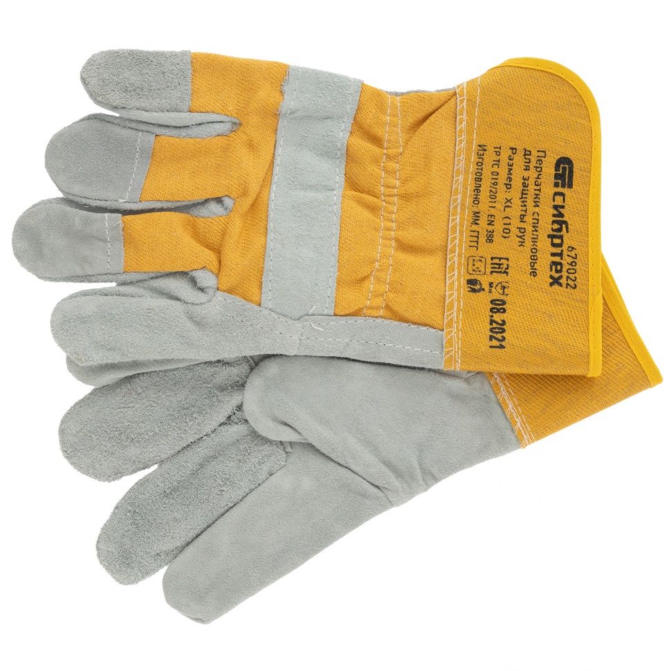 Перчатки спилковые комбинированные, усиленные, размер XL, Сибртех