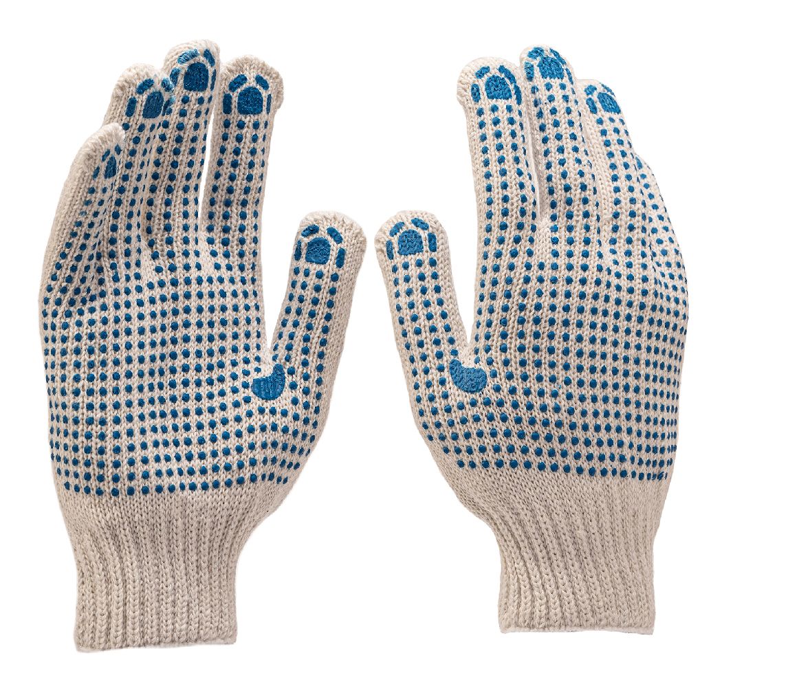 Трикотажные перчатки 67824 с 2-сторонней ПВХ-точкой, 7 класса вязки, предназначены для проведения ремонтных, строительных и механосборочных работ. Защищают руки мастера от травм и загрязнений. Изготовлены из пряжи 7 класса вязки, поэтому хорошо тянутся и легко надеваются. Перчатки будут полезны в промышленности, на строительной площадке, а также при выполнении погрузочно-разгрузочных и хозяйственных работ. ПреимуществаХороший воздухообмен — благодаря хлопчатобумажной основе руки в перчатках не потеют. Высокий ресурс — полиэфирная нить в составе пряжи обеспечивает прочность и эластичность, нанесенное с 2 сторон точечное ПВХ-покрытие повышает устойчивость к истиранию. Нескользящее покрытие — ПВХ-точка хорошо сцепляется с рабочей поверхностью, что обеспечивает надежный захват материалов и инструментов. Надежная фиксация — эластичные манжеты плотно облегают запястья. Комфортная работа — перчатки не стесняют движений пальцев. Гипоаллергенность — благодаря натуральному материалу основы перчатками могут пользоваться люди с чувствительной кожей.