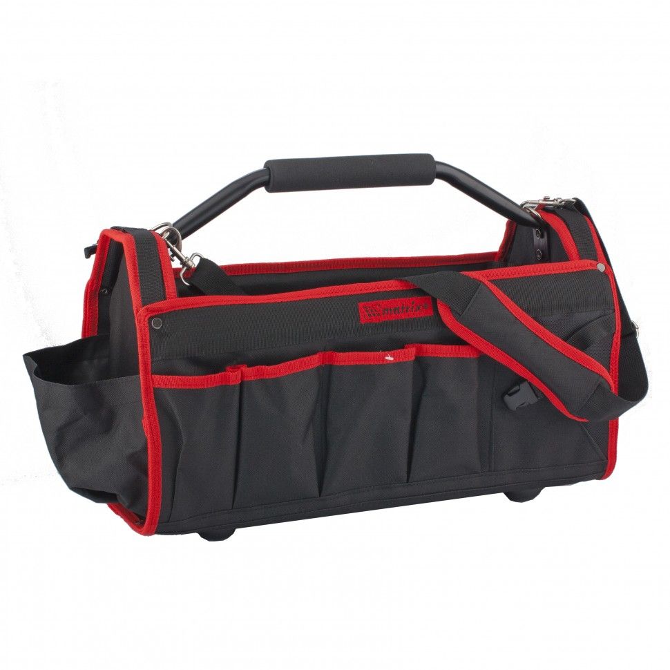 Каркасная переноска Matrix 90258 размером 490 х 230 х 280 мм удобна для перемещения и хранения инструментов. Имеет прочный каркас и весит 1,98 кг, ее легко транспортировать благодаря регулируемому плечевому ремню. В удобных карманах можно расположить все необходимые инструменты. Переноска пригодится дома, в гараже или в поездке. ПреимуществаДолговечность — переноска изготовлена из износостойкого полиэстера. Надежность — благодаря литому дну из полипропилена и крепко зафиксированной металлической ручке изделие выдерживает значительный вес. Эргономичность — на ручке имеется мягкая накладка, поэтому переноску удобно держать в руке.