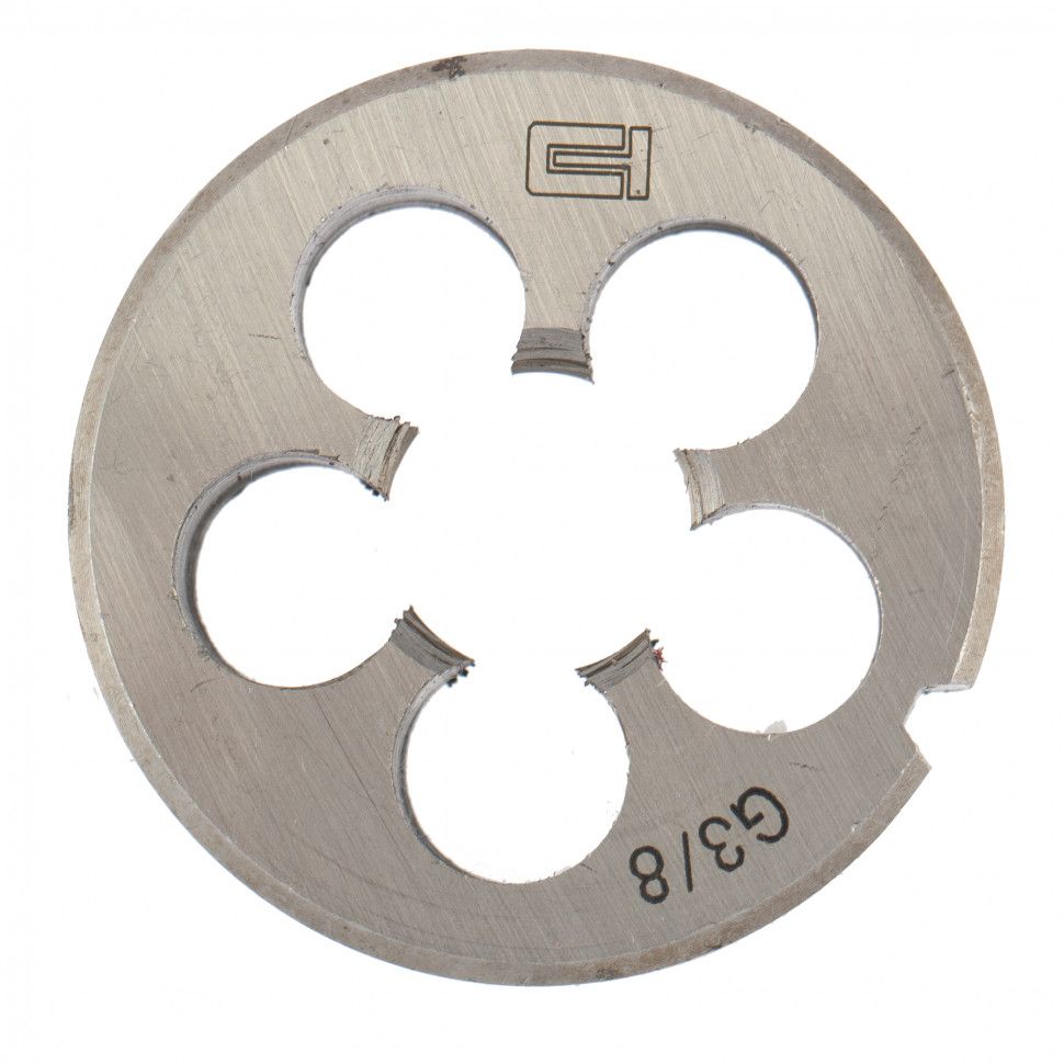 Плашка Сибртех 77138 предназначена для нарезания дюймовой резьбы диаметром G3/8 на трубах. Позволяет проводить слесарные и монтажные работы в мастерской, гараже, дома. Благодаря цельному корпусу плашка полностью захватывает деталь и нарезает высококачественную резьбу. ПреимуществаНадежность и долговечность — плашка изготовлена из инструментальной стали 9XC, твердость режущих кромок составляет 60 HRC в соответствии с ГОСТом. Высокая скорость работы — глубокие зоны обеспечивают эффективный отвод стружки. Удобный поиск нужного инструмента — на плашке предусмотрена крупная маркировка с обозначением размера. Соответствие европейским стандартам качества — нарезанная резьба имеет высокий класс точности 6Н.