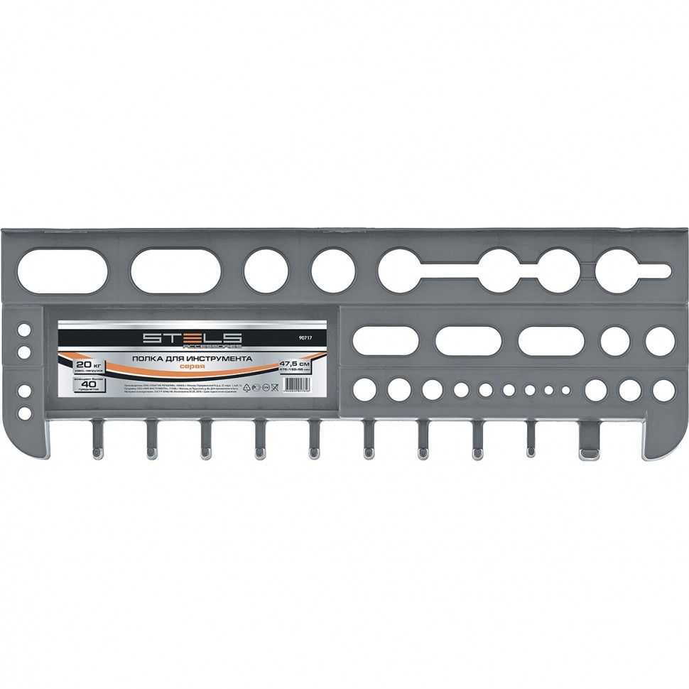Серая полка Stels 90717 длиной 475 мм используется для хранения инструментов. Благодаря ей все необходимое находится под рукой, а на рабочем месте царит порядок. Полка настенного типа позволяет компактно хранить инструменты в подвешенном виде. ПреимуществаГарантией долгой службы полки выступает высококачественный материал изготовления — полипропилен. За счет прочности полка выдерживает вес вплоть до 20 кг без риска деформации. Длина изделия 475 мм и отверстия под инструменты позволяет компактно разместить до 40 различных предметов.