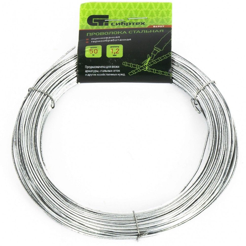 Проволока стальная 50м, оцинкованная, термообработанная 1,2 мм // Сибртех