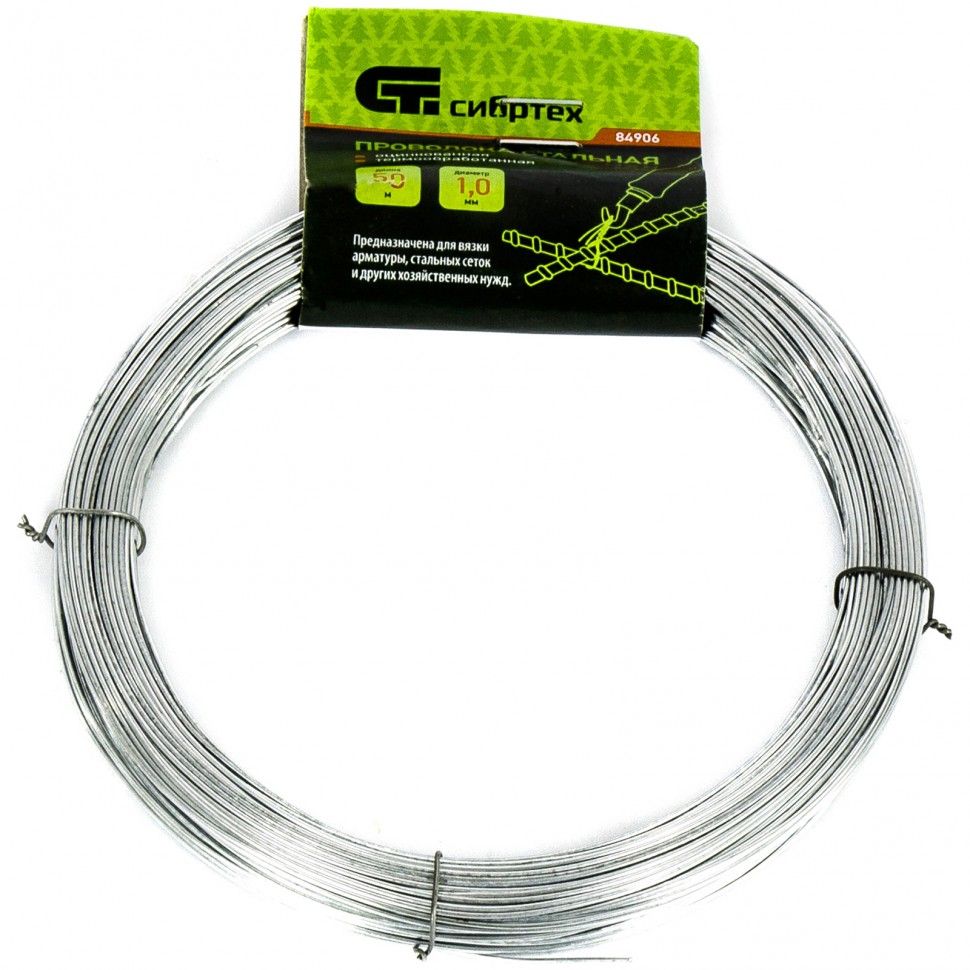 Проволока стальная, оцинкованная 50 м, оцинкованная, термообработанная 1,0 мм// Сибртех