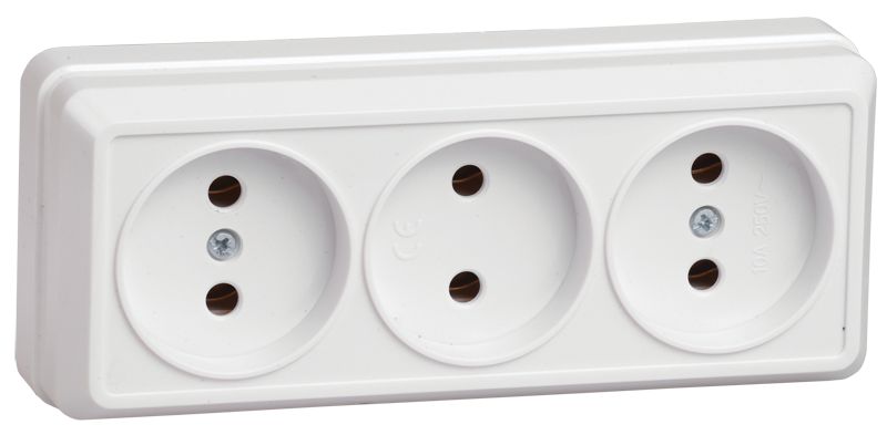 Розетка 3-местная 16А с заземлением белая "Юпитер"