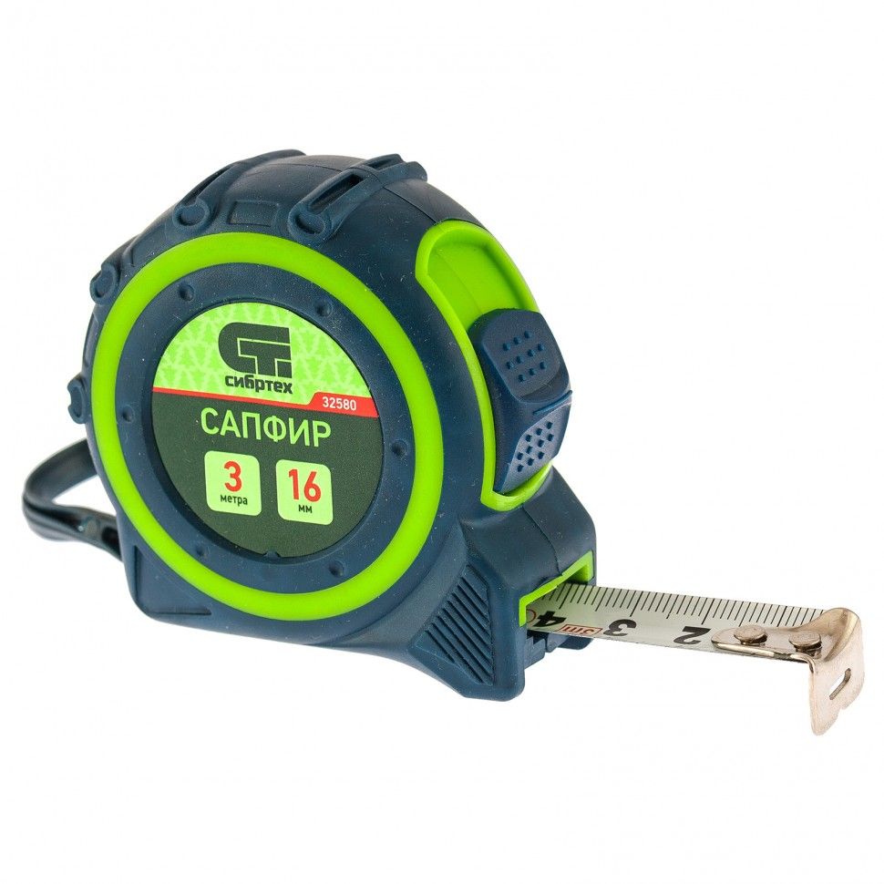 Рулетка Сапфир, двухкомпонентный корпус, 3 м x 16 мм