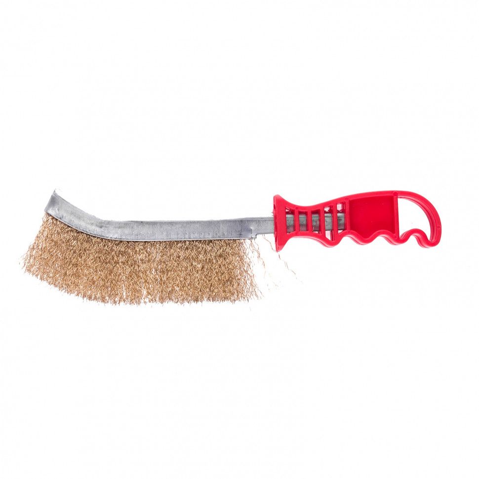 Металлическая латунированная щетка Matrix 74827 с пластиковой ручкой предназначена для ручного удаления загрязнений, ржавчины, остатков краски с металлических, деревянных и других поверхностей. Изогнутый корпус позволяет обрабатывать детали сложной формы. Металлическое основание повышает надежность инструмента. Щетка будет полезна во время строительства, ремонта, а также пригодится дома или в гараже. ПреимуществаДолговечность — проволока из высококачественной стали устойчива к износу, латунированное покрытие защищает ее от коррозии. Устойчивость к высоким нагрузкам — щетина из витой проволоки обладает повышенной деформационной стойкостью. Комфортная работа — прочная пластиковая рукоятка с углублениями для пальцев обеспечивает надежный хват.