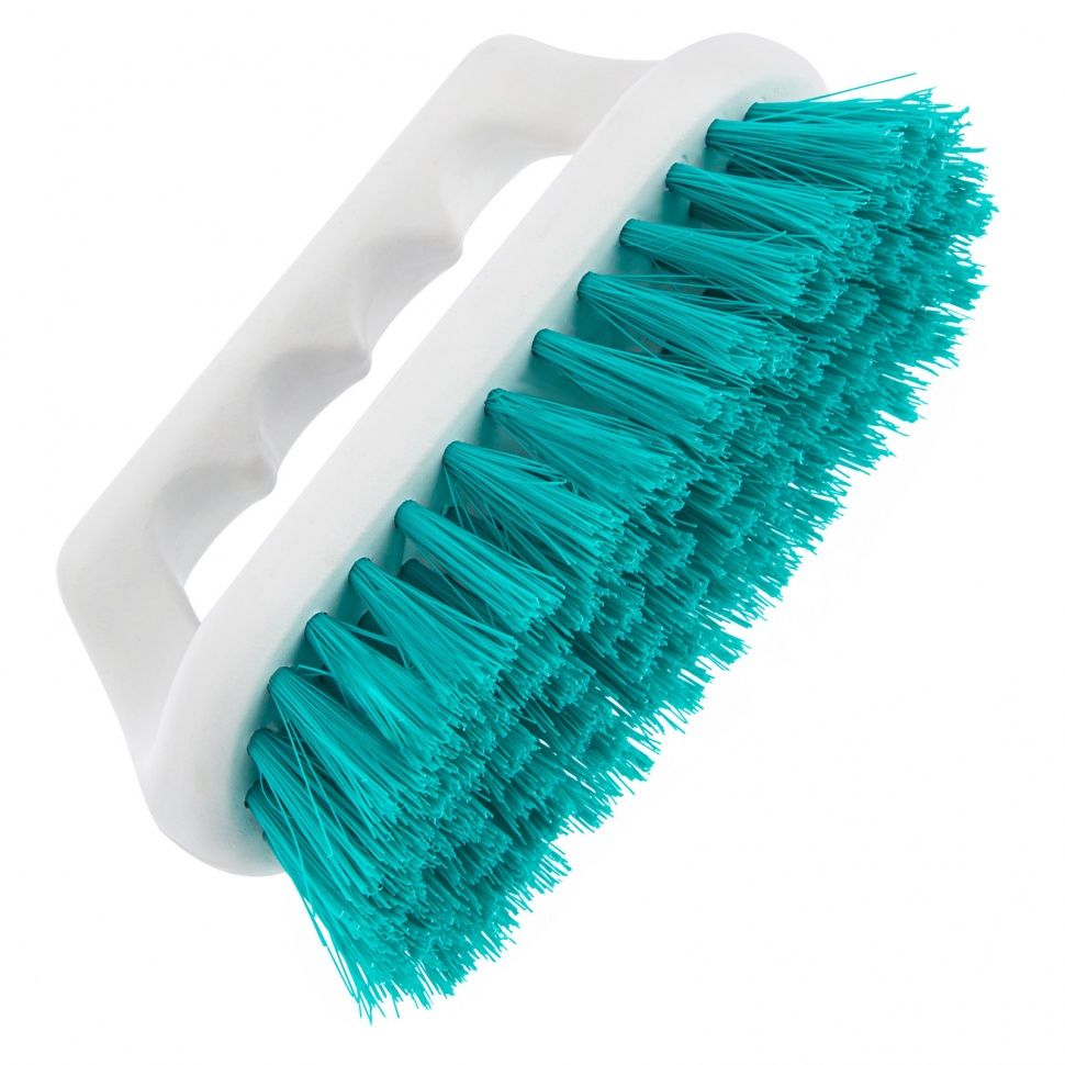 Универсальная щетка Palisad Home 935655 размером 140 х 60 мм, с бирюзовой щетиной, используется для чистки как текстильных материалов (сукна и других тканей), так и твердых поверхностей. Будет полезна в быту. ПреимуществаВысокий ресурс — щетина из качественного полимерного сырья устойчива к истиранию. Эффективное очищение — за счет густой щетины щетка полностью удаляет пыль и загрязнения. Эргономичность — рукоятка с подпальцевыми выемками удобно ложится в руку.