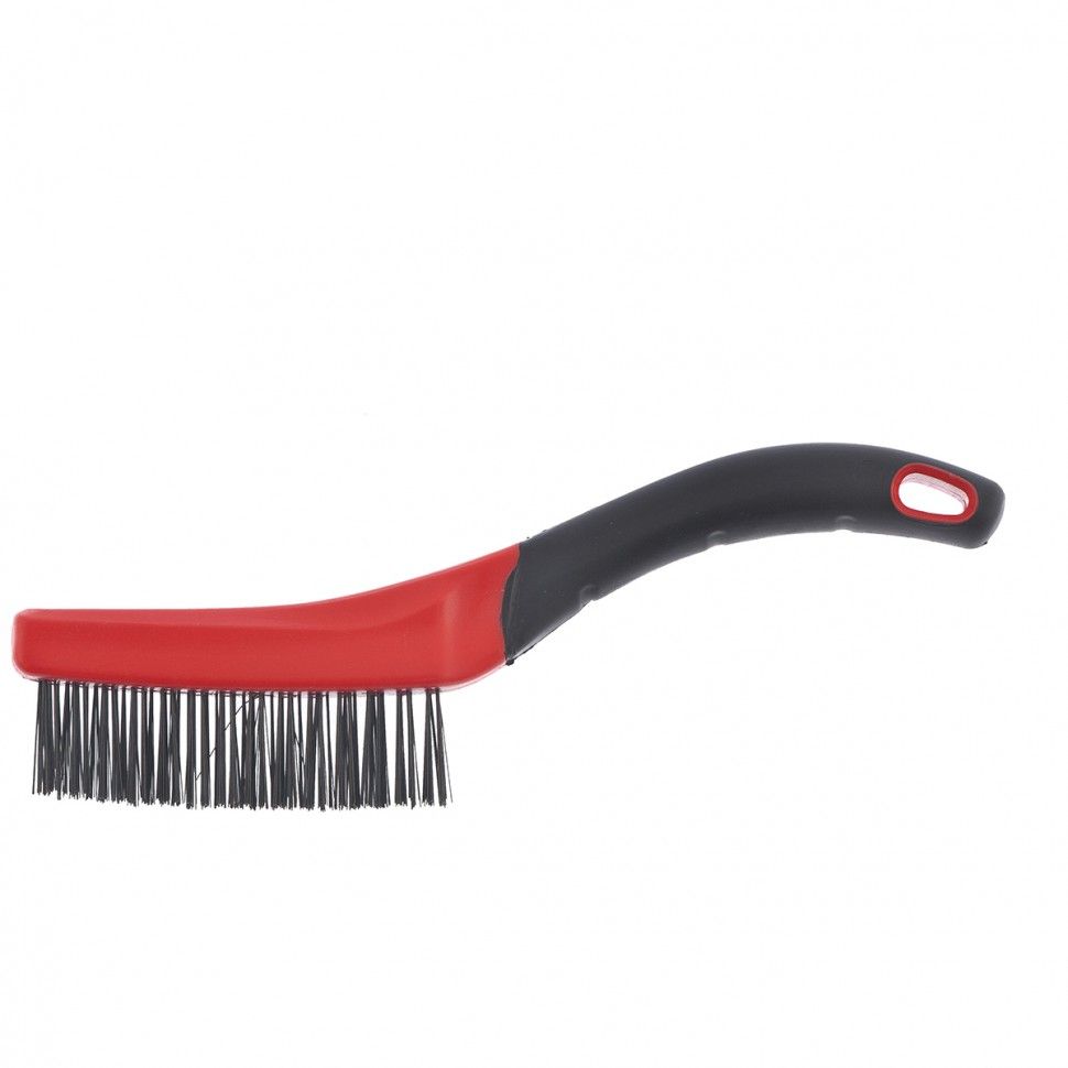 Зачистная трехрядная щетка Matrix 74833 с двухкомпонентной рукояткой очищает от ржавчины, въевшейся грязи и краски металлические, деревянные и другие поверхности. Расположенные в 3 ряда пучки проволоки обеспечивают высокое качество обработки. Изогнутая рукоятка позволяет полностью задействовать рабочую поверхность щетины. Щетка будет полезна строителю, автослесарю и домашнему мастеру. ПреимуществаВысокая производительность — щетина изготовлена из высококачественной стальной проволоки. Крепкая фиксация пучков проволоки в основании — щетина не разлетается в процессе зачистки. Надежный хват — эргономичная двухкомпонентная обрезиненная рукоятка не выскальзывает из ладони. Удобное хранение — в рукоятке имеется отверстие для подвешивания щетки.