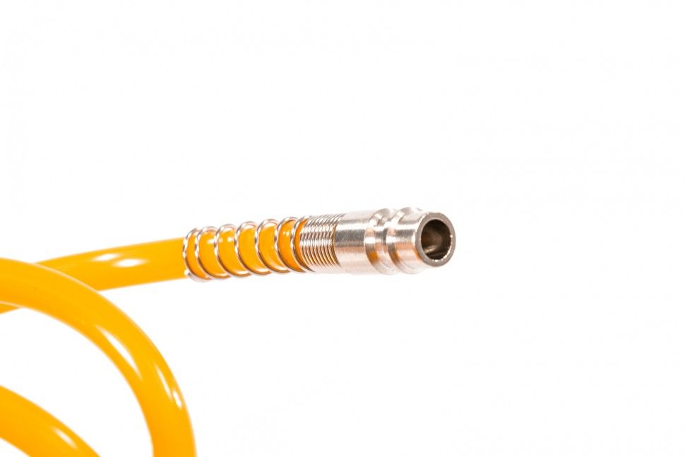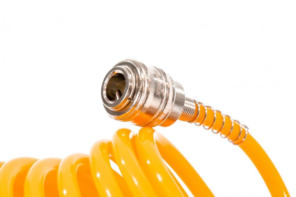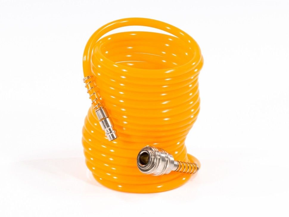 Спиральный воздушный шланг Matrix 57002 длиной 5 м, с быстросъемными соединениями, используется для подключения пневмоинструментов к компрессору. Изготовлен из легкого полиэтилена, за счет чего даже длительная работа не вызывает усталости. Имеет форму спирали, поэтому его не нужно скручивать после работы. Рукав пригодится в автосервисе, слесарной мастерской, а также во время отделочных работ. ПреимуществаБыстроразъемное соединение ускоряет подключение пневмоинструментов, что экономит время и силы мастера. Максимальное давление составляет 18 бар, что позволяет использовать шланг с мощным компрессорным оборудованием. Соединители имеют антикоррозийное покрытие, поэтому не ржавеют и служат долго. Увеличенная толщина шланга повышает сопротивляемость нагрузкам, устойчивость к высокому давлению и механическим воздействиям.