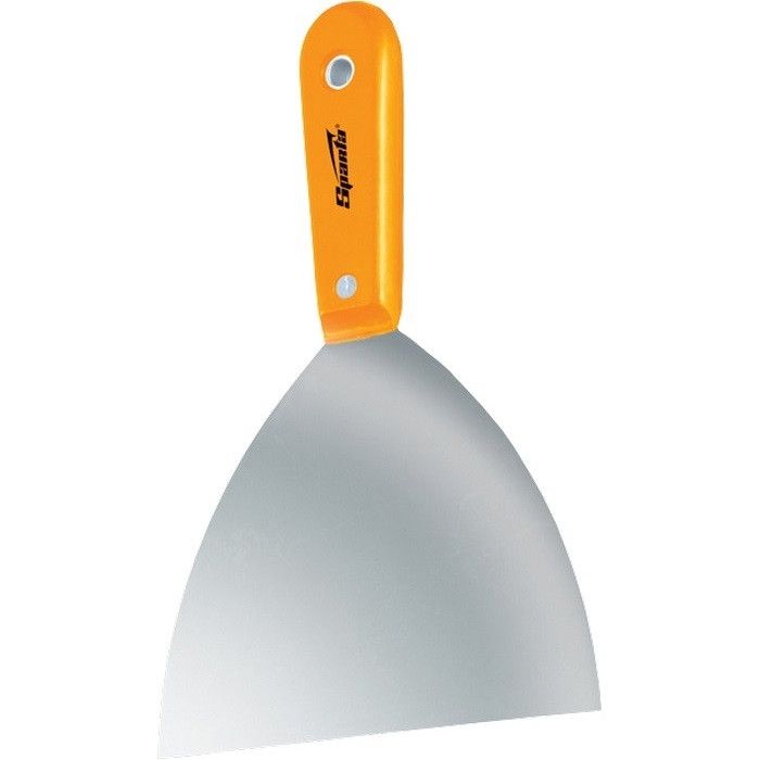 Стальная шпательная лопатка Sparta 852485 шириной 150 мм, полированная, с пластмассовой ручкой, станет незаменимым помощником при проведении строительных и ремонтных работ. Пригодится мастерам для нанесения, выравнивания и сглаживания различных клеевых и строительных растворов. ПреимуществаОдна лопатка для разных задач — за счет острого края полотном удобно удалять с поверхностей следы ржавчины. Коррозионная стойкость — рабочая часть покрыта защитным бесцветным лаком. Прочность и долговечность — полотно выполнено из углеродистой стали и надежно скреплено с рукояткой. Качественная работа — полотно отполировано, поэтому к нему не прилипает раствор, а обрабатываемая поверхность получается идеально гладкой. Комфортная работа — легкая пластиковая рукоятка удобно ложится в руку. Практичное хранение — в рукоятке имеется отверстие для подвешивания.