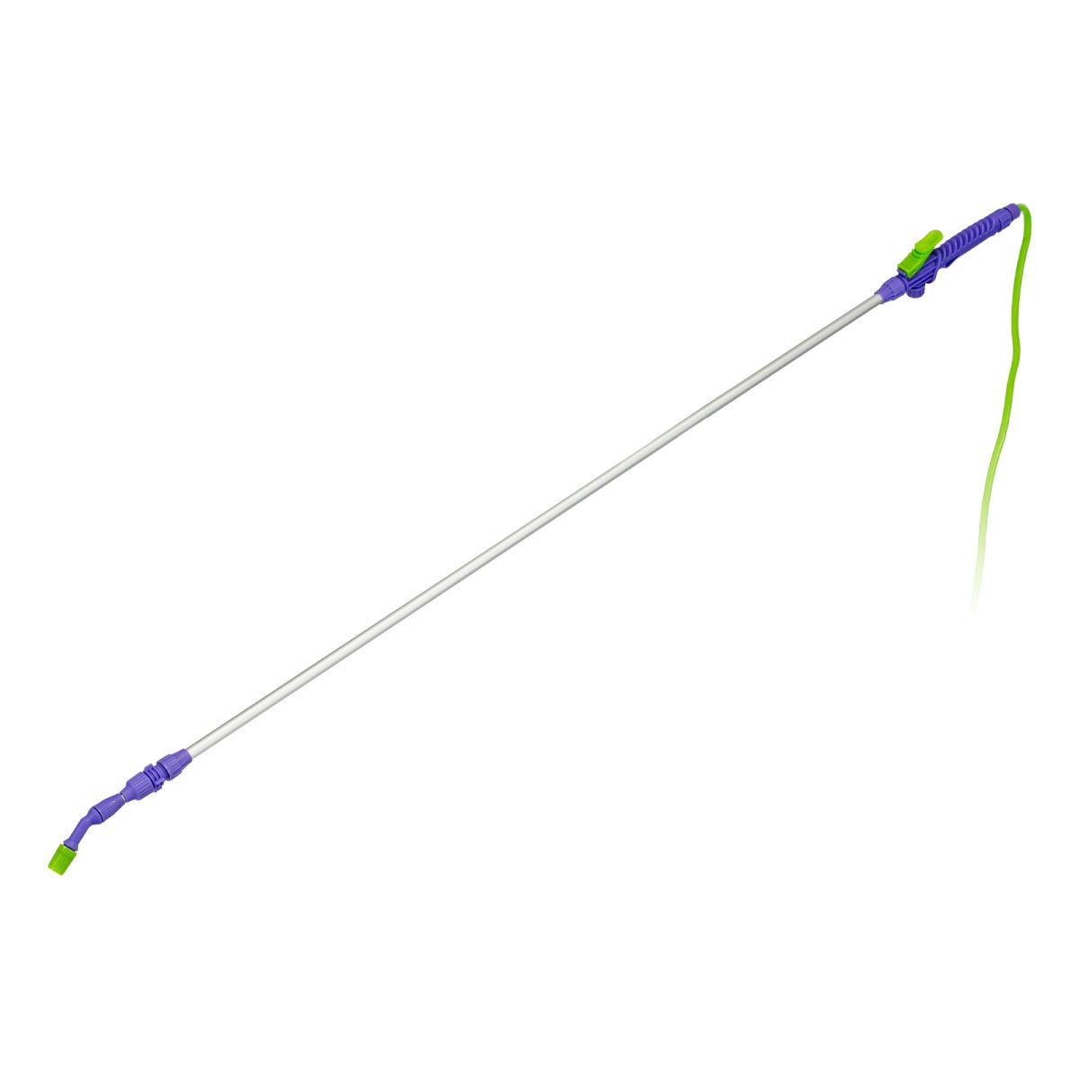 Универсальная штанга для опрыскивателя Palisad BASE 64751 предназначена для распыления химикатов и других средств защиты растений от вредителей и заболеваний. Длина регулируется в диапазоне от 1 до 2 метров, что позволяет подавать раствор точечно на пораженные участки. Штанга оптимальна для ухода за растениями разной высоты. ПреимуществаРегулировка подачи раствора — можно настроить режим распыления от струи до плотного тумана. Прочность и долговечность — штанга из алюминия и ABS-пластика устойчива к повреждениям и коррозии. Удобная работа — производитель предусмотрел возможность фиксации курка в нажатом положении. Универсальность — в комплект поставки входит 5 сменных гаек размером М14х1,5, М19х3, М18х2, М17х30, М21х2 для установки штанги на опрыскиватели разных моделей.