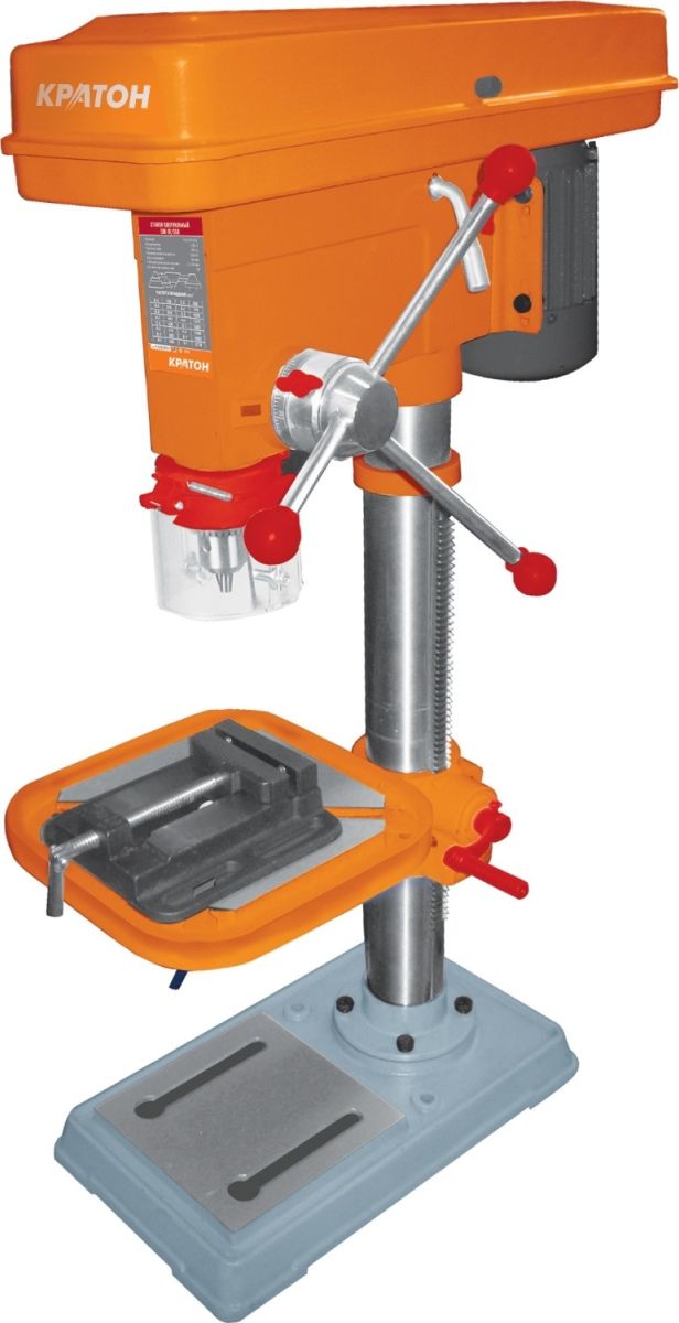Сверлильный станок Кратон DM-16/550 4 02 04 010 отличается от аналогов широкими возможностями настройки скоростного режима. 16 вариантов скорости в диапазоне от 180 об/мин до 2700 об/мин гарантируют эффективное сверление материалов различной твердости. Обмотка двигателя выполнена из меди, что гарантирует бесперебойную и долгую эксплуатацию станка. Модель питается от бытовой электросети переменного тока, что позволяет размещать ее в гараже или небольшой мастерской. Конструкция оборудования дает возможность использовать в качестве оснастки широкий диапазон режущего инструмента с диаметром хвостовика от 1.5 мм до 16 мм. В комплект поставки входят тиски для быстрого и жесткого закрепления деревянной детали в зоне обработки.