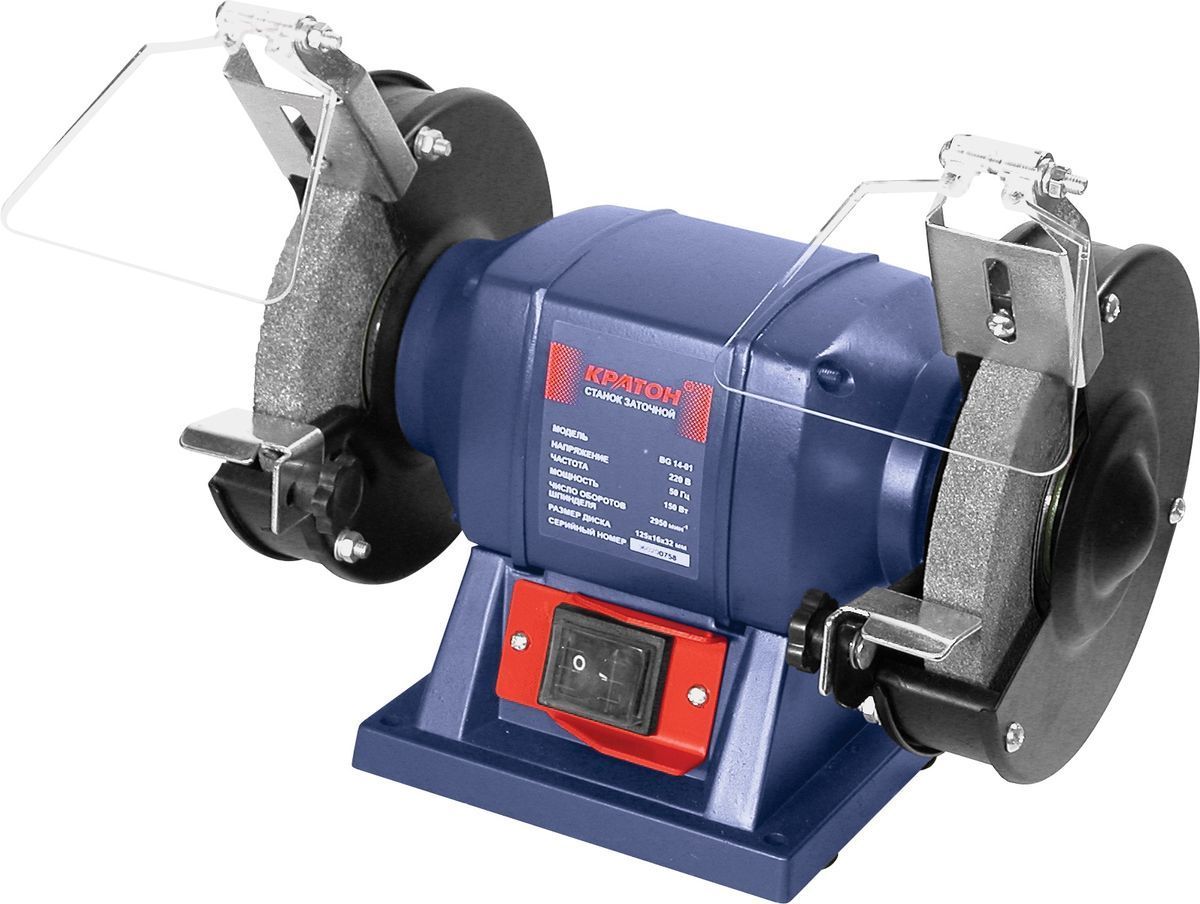 Заточной станок Кратон BG 14-01 4 02 03 013 - классический агрегат, который будет полезен на строительной площадке или в мастерской. Представляет собой электрическую точильную машину с двумя упорами для удобного обслуживания инструмента. Диски прикрыты прозрачными щитками, обеспечивающими безопасность оператора при работе. Размеры точильного диска: 125х16х32 мм.